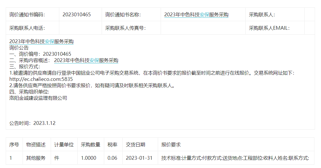 本比选项目为中国联通河南洛阳新安分公司保安服务项目公开比选(采购代理编号:ZX37102023000041),采购人为中国联合网络通信有限公司洛阳市分公司,采购代理机构为河南省信息咨询设计研究有限公司