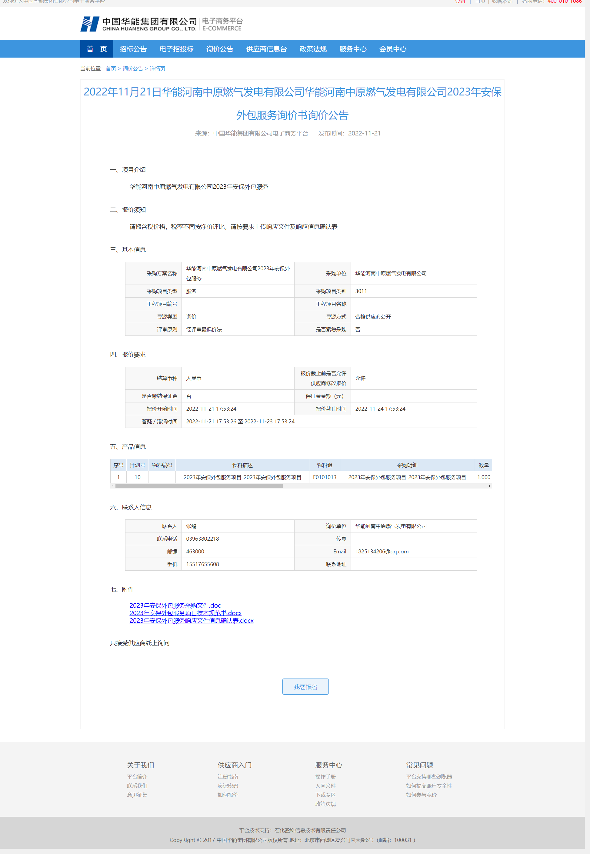1.招标条件: 中海域安项目管理咨询有限公司受河南国浩物业服务有限公司的委托,就河南国浩物业服务有限公司保安服务入围项目进行国内公开招标,项目资金已落实,现欢迎合格的潜在投标人参与投标。 2.项目概况