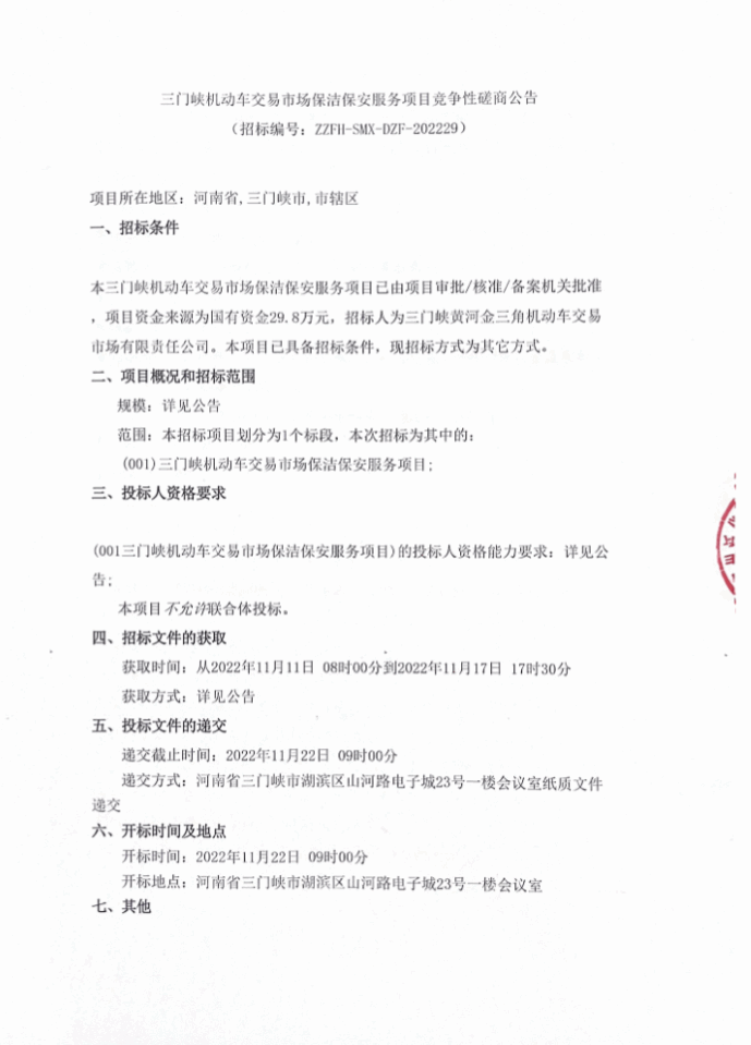 洛阳市公安局监所管理支队行政拘留所2023年度保安服务项目竞争性磋商公告 (招标编号:HT-ZBDL-2022052号) 项目所在地区:河南省,洛阳市 一、招标条件 本洛阳市公安局监所管理支队行政拘留