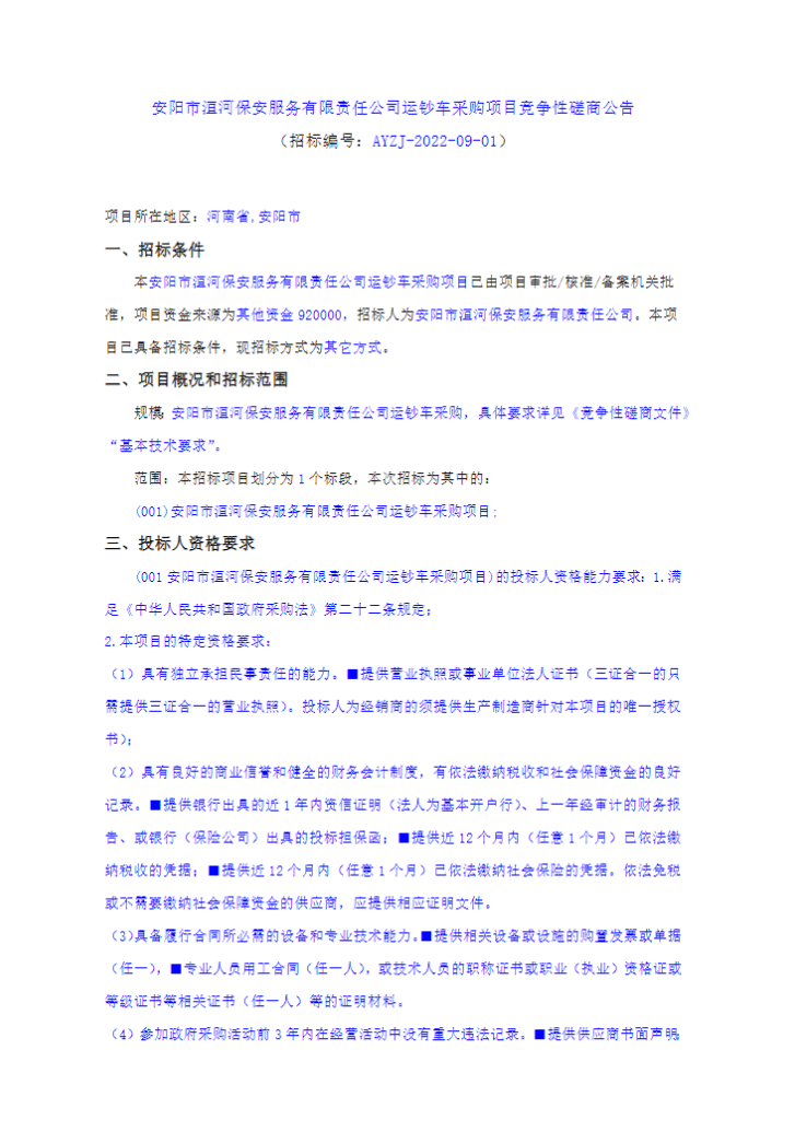项目概况: 河南省豫南监狱2022-2023年度保安及安检服务项目的潜在供应商应在驻马店市解放路西段天腾盛世20号楼1单元3层(地址)获取竞争性谈判文件,并于2022年09月21日09点00分(北京时