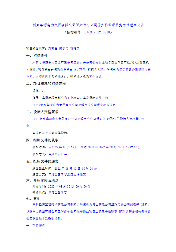 中国电信周口分公司市区二部2022-2025年办公楼保安采购项目采购人为中国电信股份有限公司周口分公司市区第二营业部,项目资金已落实,已具备采购条件,现进行公开询价。 一、项目概况与采购内容 1.项目